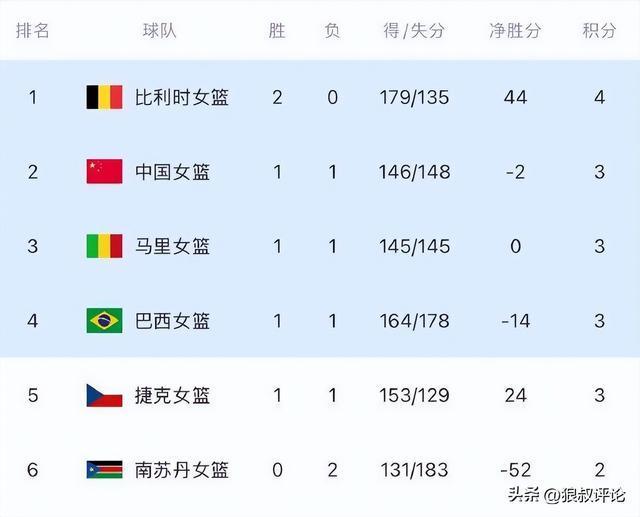 本场比赛过后,中国女篮,目前1胜1负净胜分-2分,小组积3分,排在A组第2位。